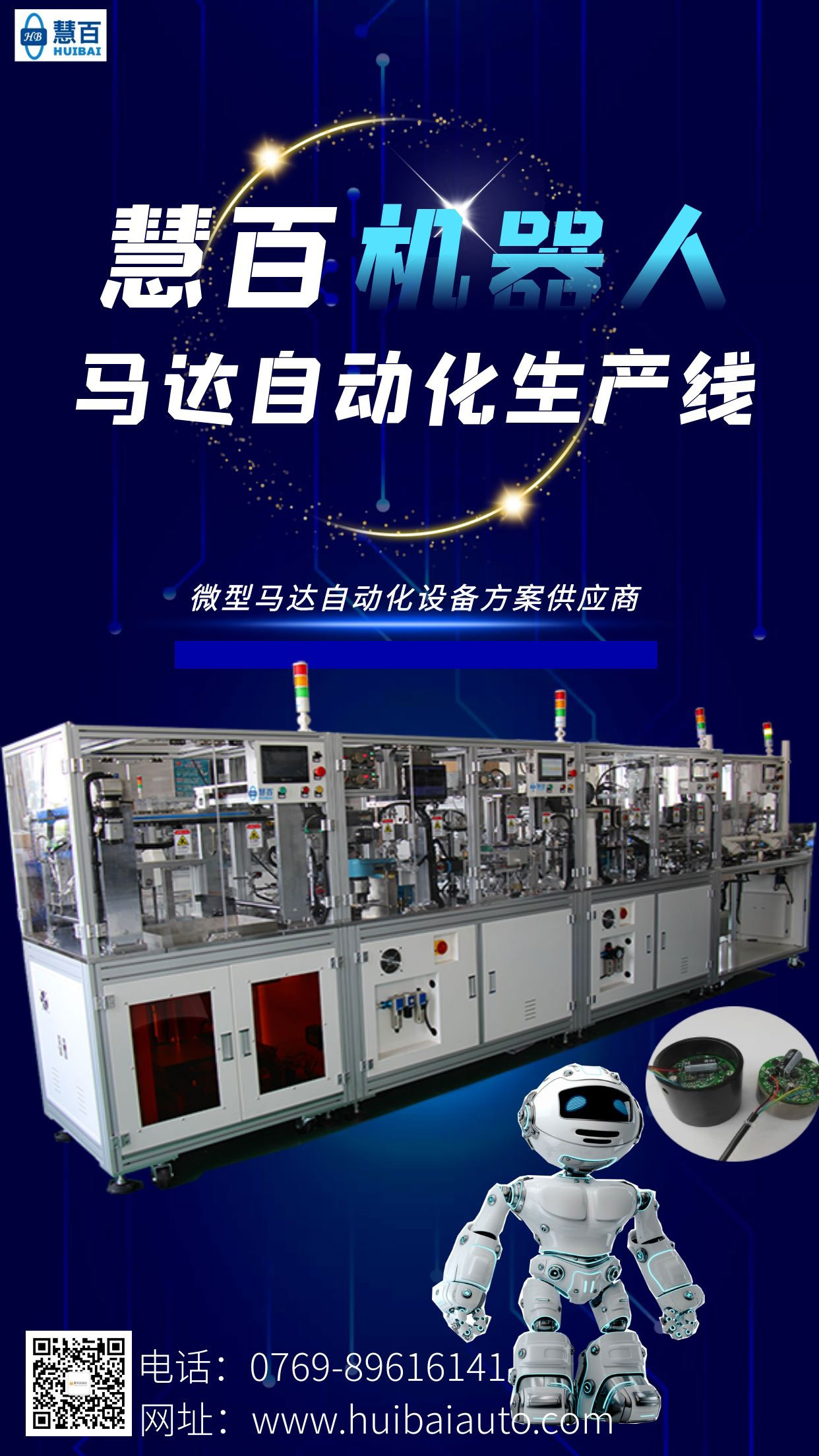 东莞市慧百自动化有限公司专注于微型马达自动化生产线设备研发设计与制造。可根据客户需求定制部分段马达装配设备及整套的全自动化马达装配设备。其整线设备效率可在2-5s/pcs,可兼容多款马达的装配设备,其换款时间只需30Min。马达全自动化装配设备整线采用皮带加治具的方式传递物料,运行速度快,功能齐全,设备结构简单,可实现全自动多种点胶、点油、焗干、冷却等复杂工艺的马达生产。其工序有转子段:绕线、点焊、绕线检查、圈仔焊接、定位圈组装、转子铜砂检测、转子介子到位检查;磁底段:点胶、点胶状态检查、磁石组装、大壳装杯士、大壳充磁;马达总装段等整套设备工序组装。整线自动化、智能化及数据化的应用。可实现对产品品质的全流程把控,在进一步减少产品的不良率的同时提高马达质量的一致性和稳定性。