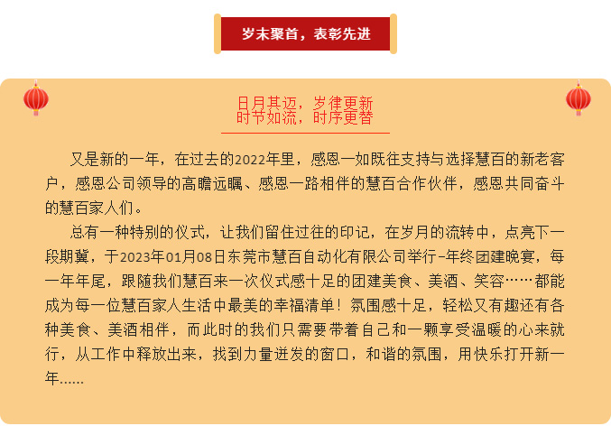 复盘2022年,在国外形势、国内外疫情给行情及企业的经营带来了巨大冲击的时局中,无论面对什么样的环境,我司冷总输出的永远是正面、积极、乐观的思想,作为公司最高领导,他不仅让员工实现工资稳步提高,还始终心系着所有慧百家人,用实际行动助力员工学习成长,实施一系列的员工关爱措施......正因为有他这样的公司掌坨人,慧百家人们成为彼此最坚实的臂膀,相互鼓励、接力,不忘初心,切实将客户服务工作内化于心、外化于行,持续技术创新。
