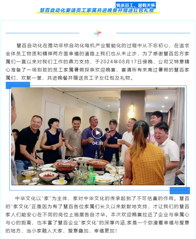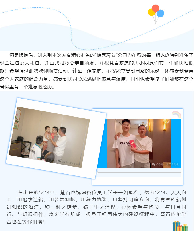 慧百自动化‖员工家属暑假探亲欢迎晚宴